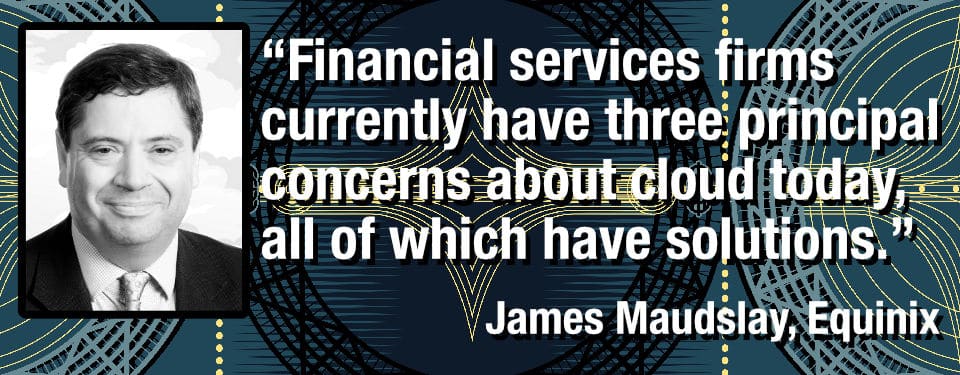 Equinix is best known for its network of data centres spanning 40 markets across five continents, but this network has allowed them to offer the only global interconnection platform. James Maudslay, Financial Services Expert – Vertical Marketing EMEA at EQUINIX explains why the cloud and what they have called ‘Interconnection Oriented Architecture’ will become an integral part of the financial services fabric.